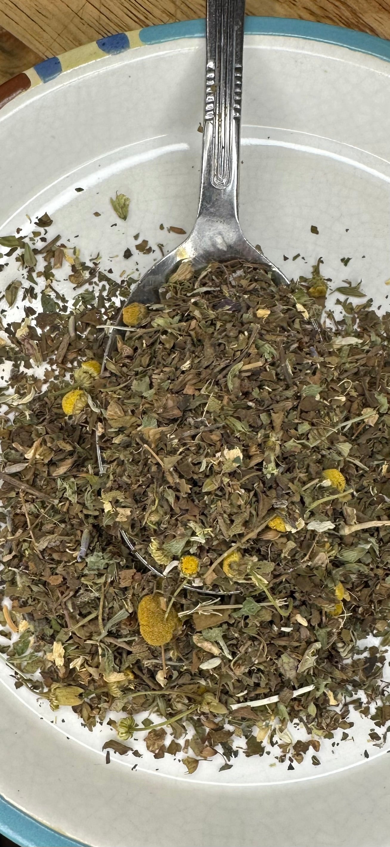 Ingredients: Tulsi (Holy Basil), Lemon balm, lemon myrtle, lavender buds, chamomile, peppermint, ginger, valerian root.