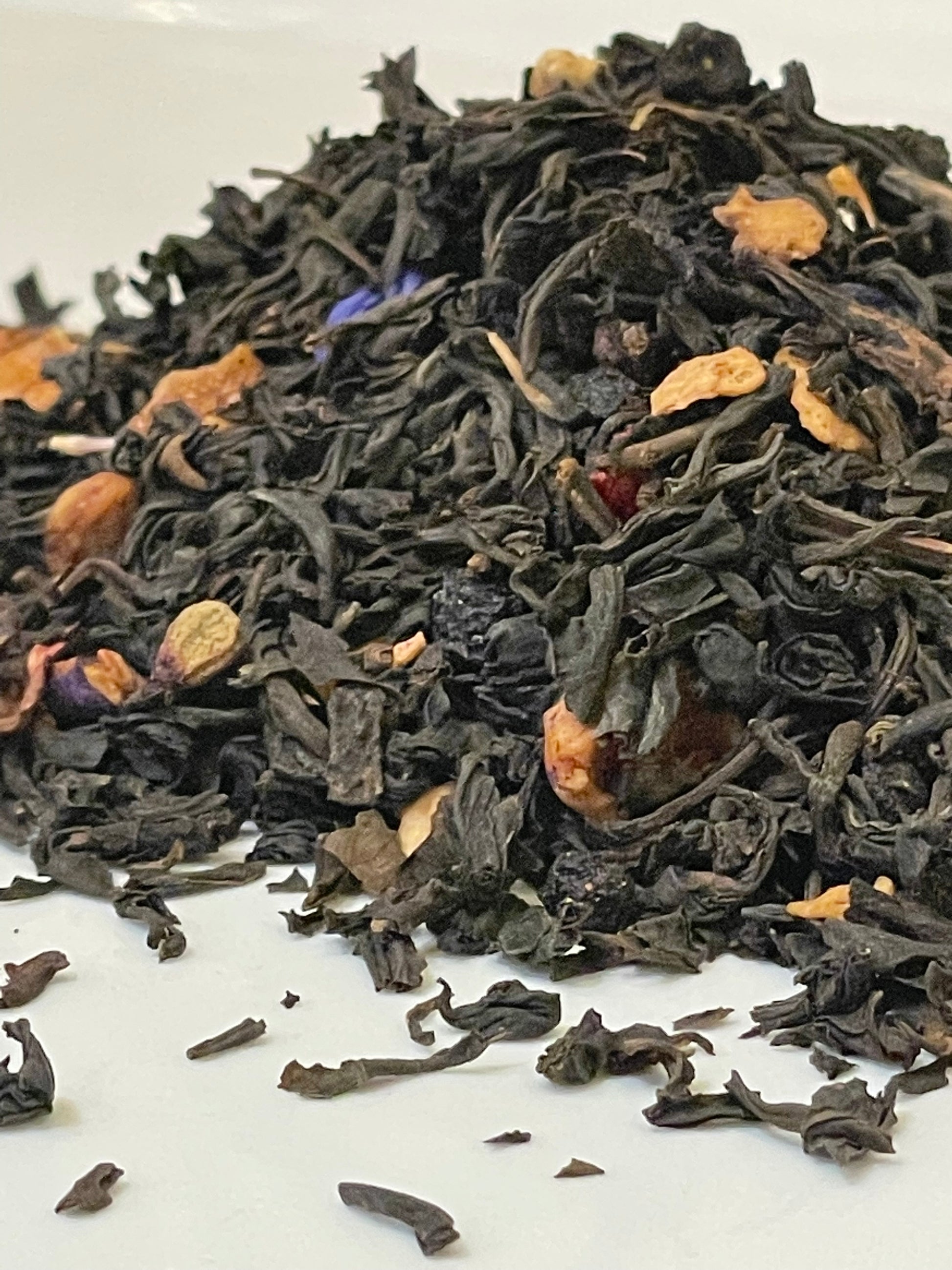 Ingred: Chinese Yunnan black tea , Pomegranate, Blueberry, Apple, Corn flowers and Mallow blossom