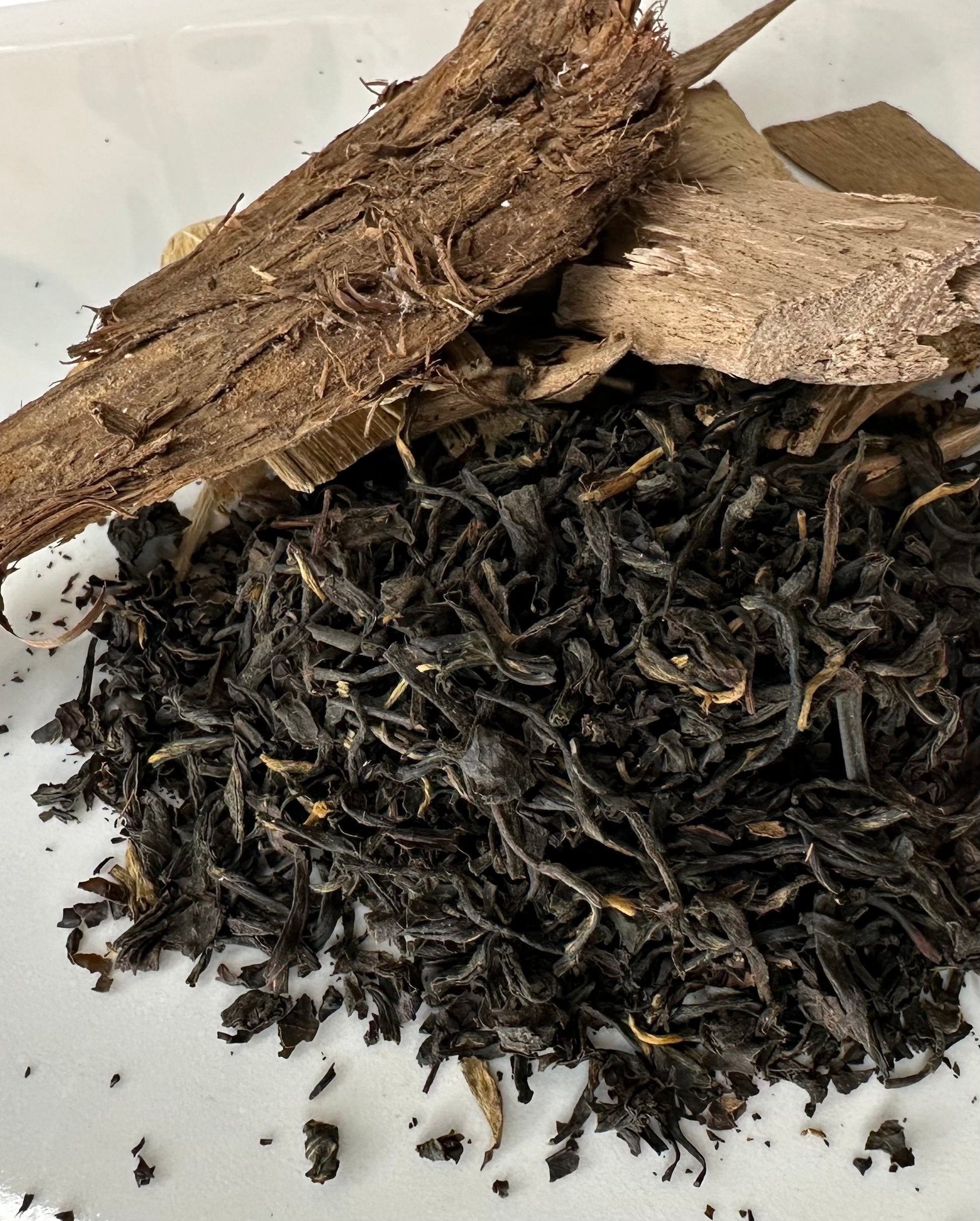 A black tea blend from the 16 century Smoked Lapsang Souchong and Keemun make a delicious smoked brew with hints of caramel .