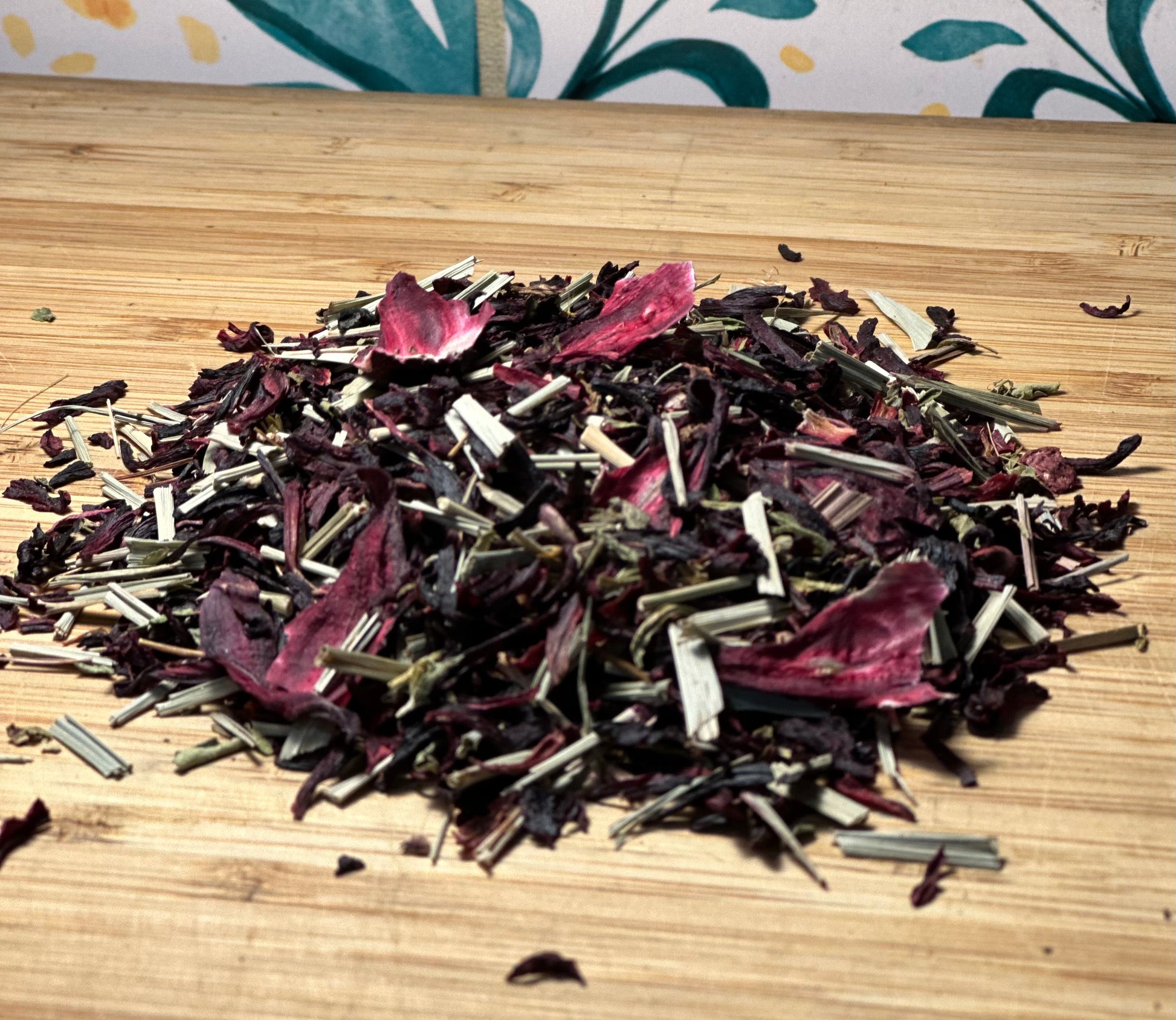 Ingredients: Hibiscus flowers, lemongrass, a touch of Stevia