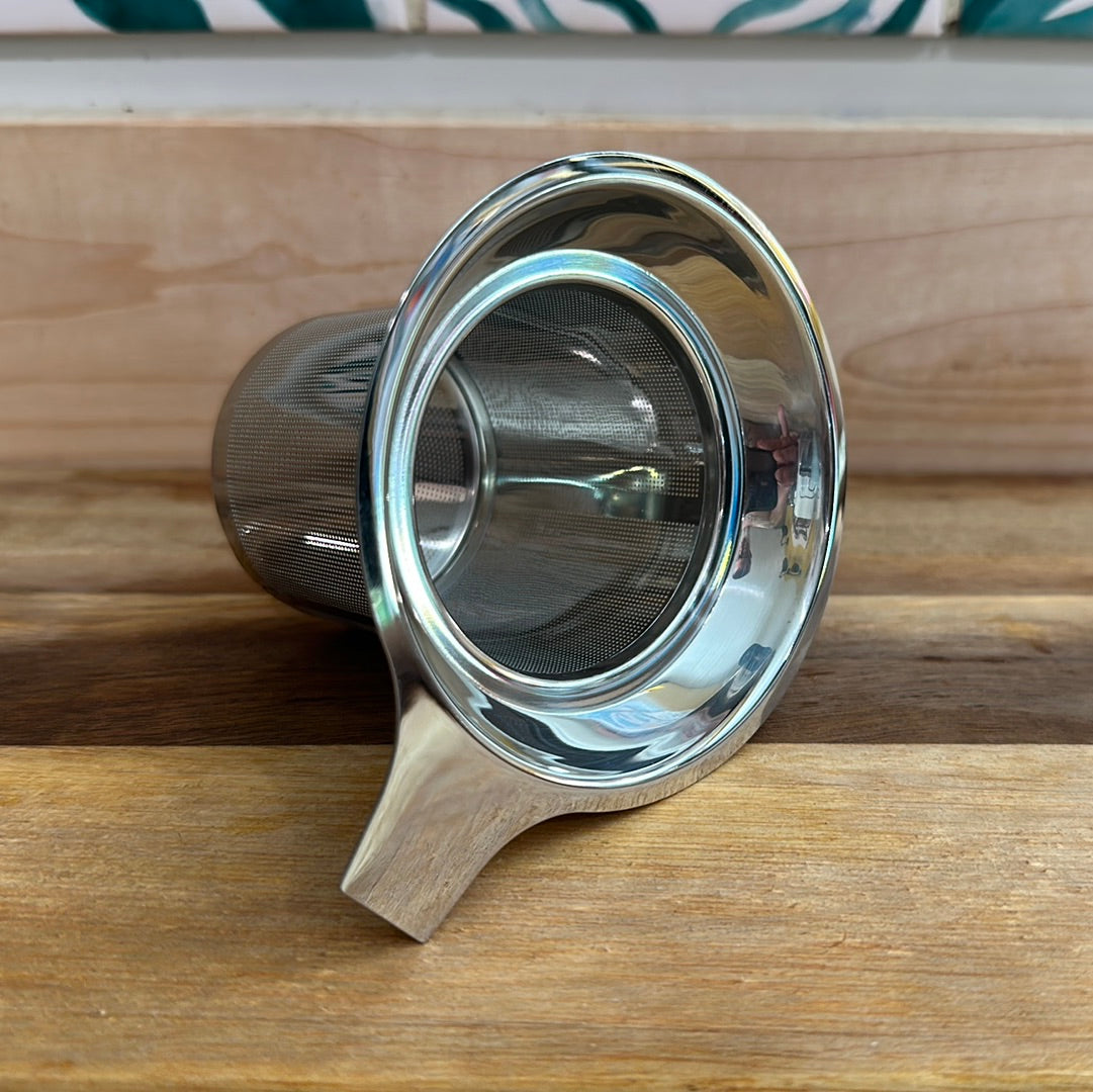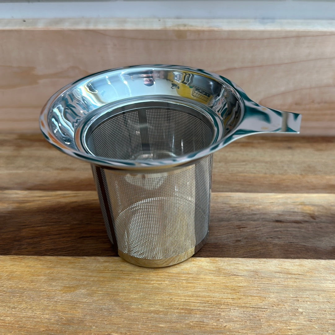 Stainless steel tea infuser to fit a wide variety of mugs.