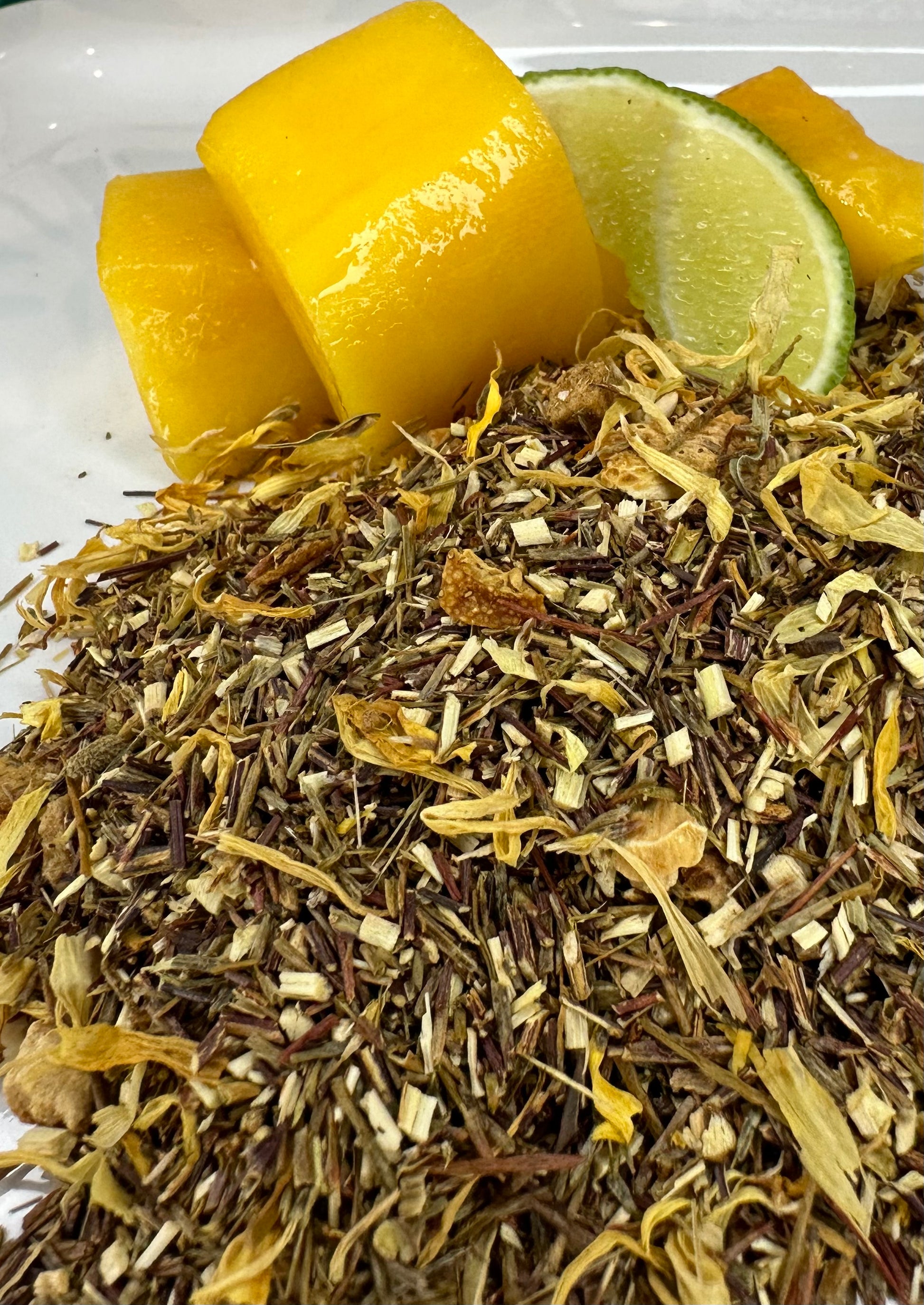 Ingredients: Green Rooibos, mango, passionfruit, apricot, marigold flowers